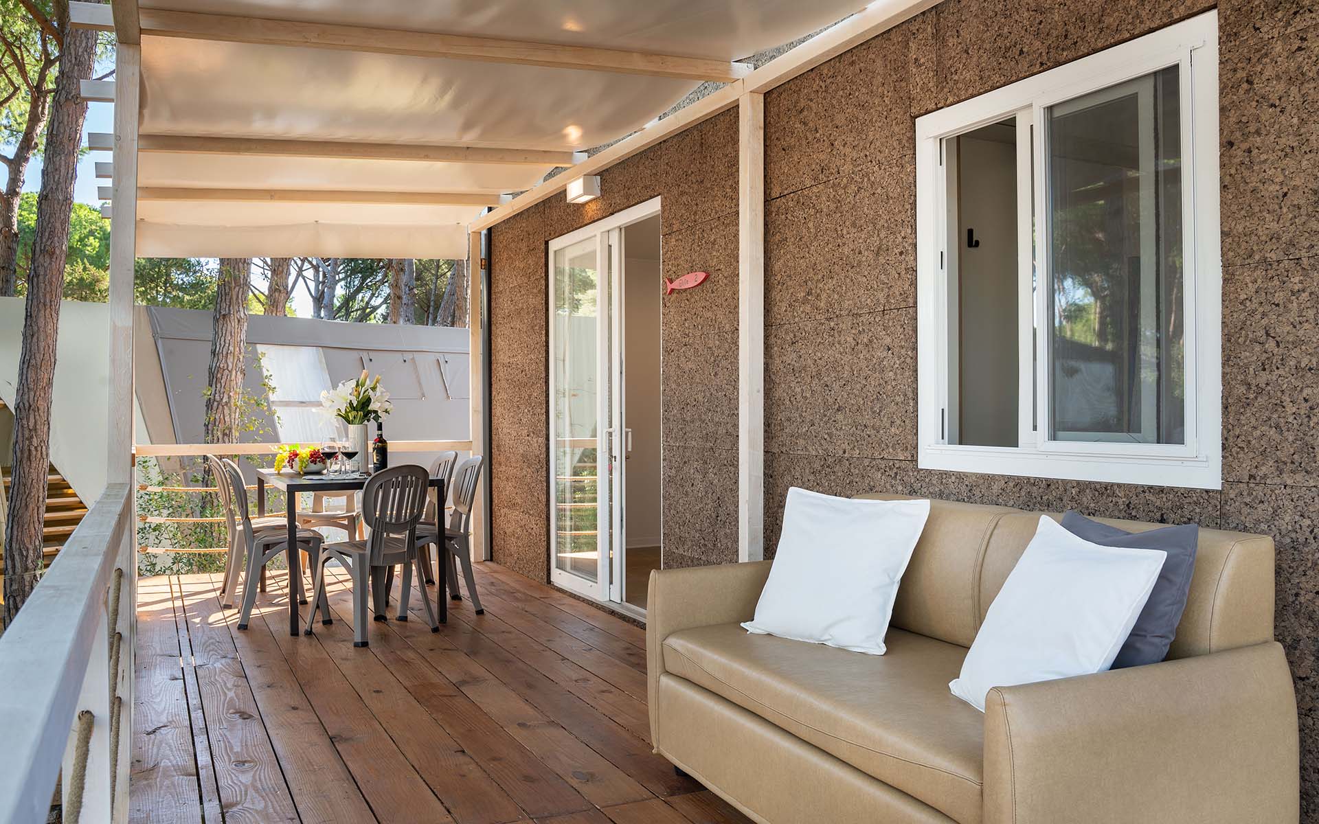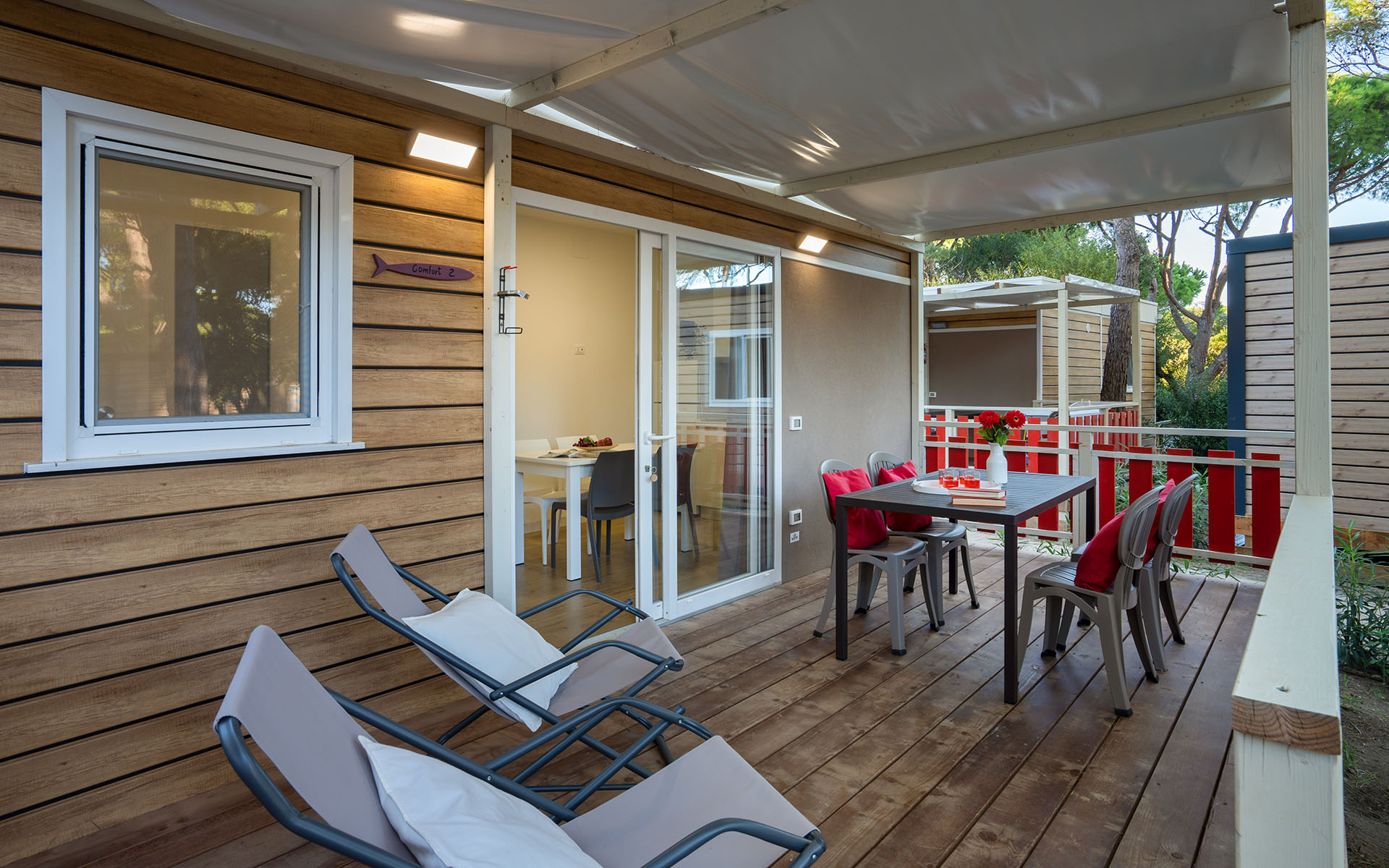 Un’area de Il Capannino è dedicata alle case mobili, comodi alloggi attrezzati di tutto il necessario ma che conservano il gusto della vacanza in campeggio. Le mobile home sono dotate di: